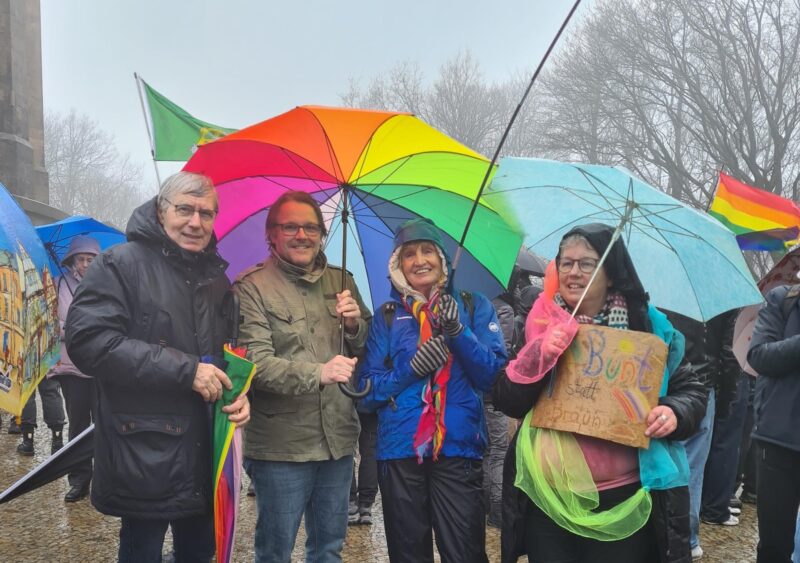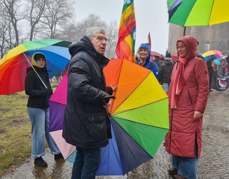 Dem Aufruf der Linksjugend Lippe und der Grünen Jugend Lippe folgte ein Bündnis aus lokalen Initiativen, Gewerkschaften, Kirchen, Parteien und Kulturvereinen hatte die Veranstaltung organisiert, die nicht als Gegenprotest, sondern als eigenständige Demonstration für die Demokratie verstanden werden sollte. Der breite Zuspruch – von Detmolder*innen über Lipper*innen bis hin zu weiteren Unterstützern – zeigte die Wachsamkeit und Handlungsbereitschaft der Zivilgesellschaft in Lippe.